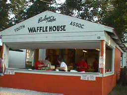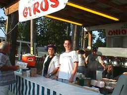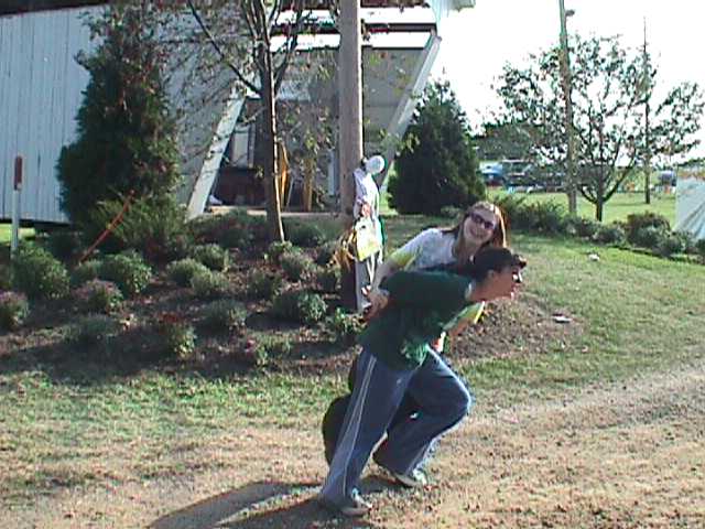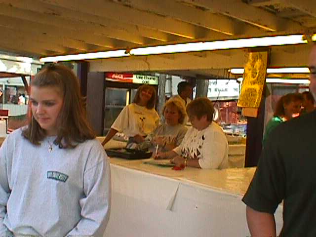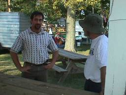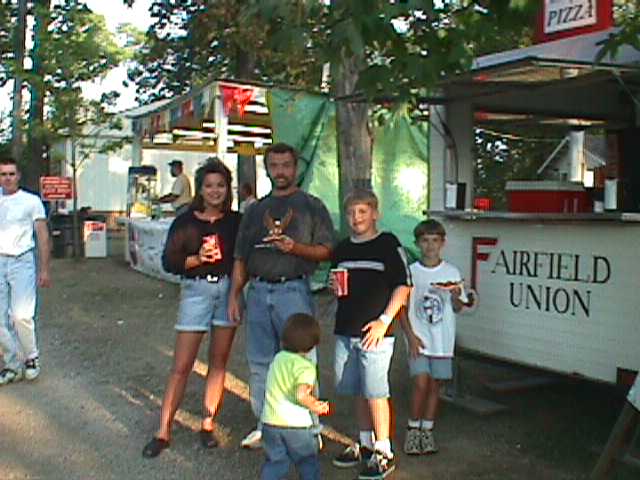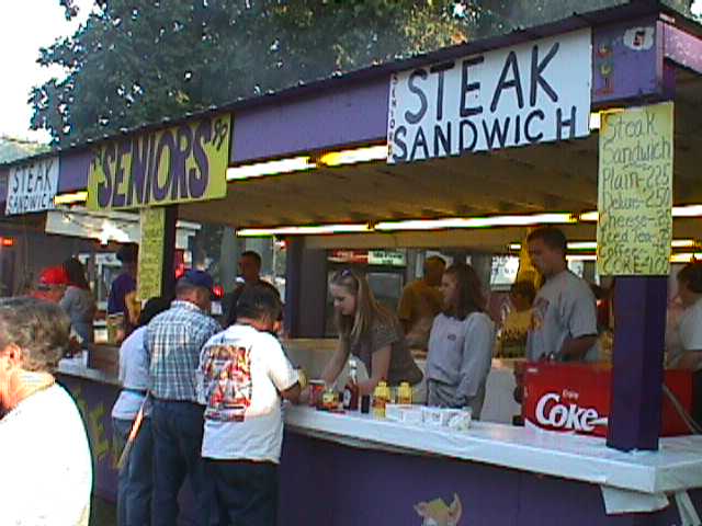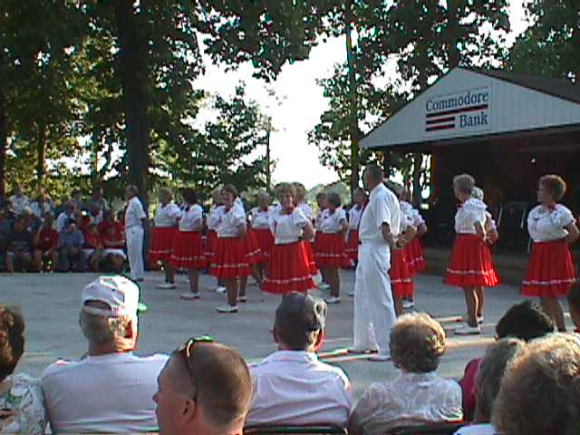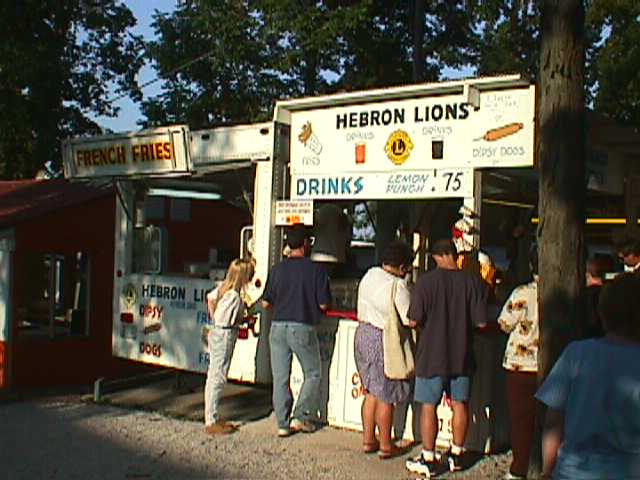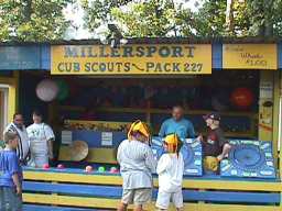 Enjoying the Festival but not wanting to get their pictures taken. You can see the old Charles Holiday Covered Bridge in the background which now rests at the back of the Sweet Corn Festival grounds. |